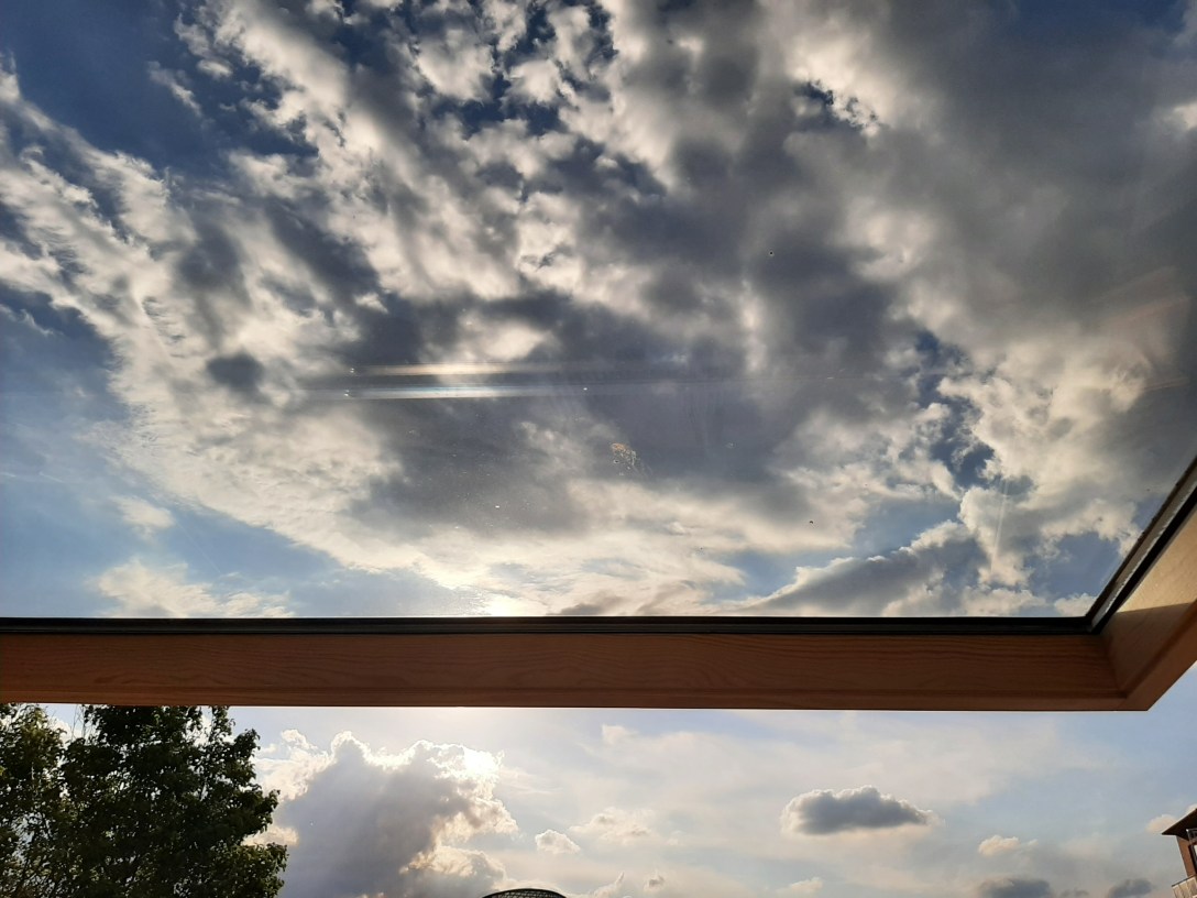 Unterm Dachfenster. Der Rahmen aus hellem, gemustertem Holz. Und ich stehe einfach nur darunter, den Kopf in den Nacken gelegt. Und schaue hinauf, hinaus in den wechselhaften Himmel. So eigensinnig und flatterhaft war das Wetter schon lange nicht mehr. Ein überraschendes Potpourri aus Regen, Wind und Sonne. Die schräge, rechteckige Scheibe ist in diesem Moment… Weiterlesen Wettergemälde